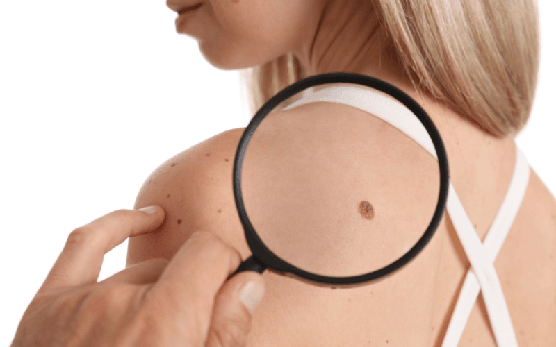 1. Moles: Small spots on the skin, often brown in color, sometimes raised.